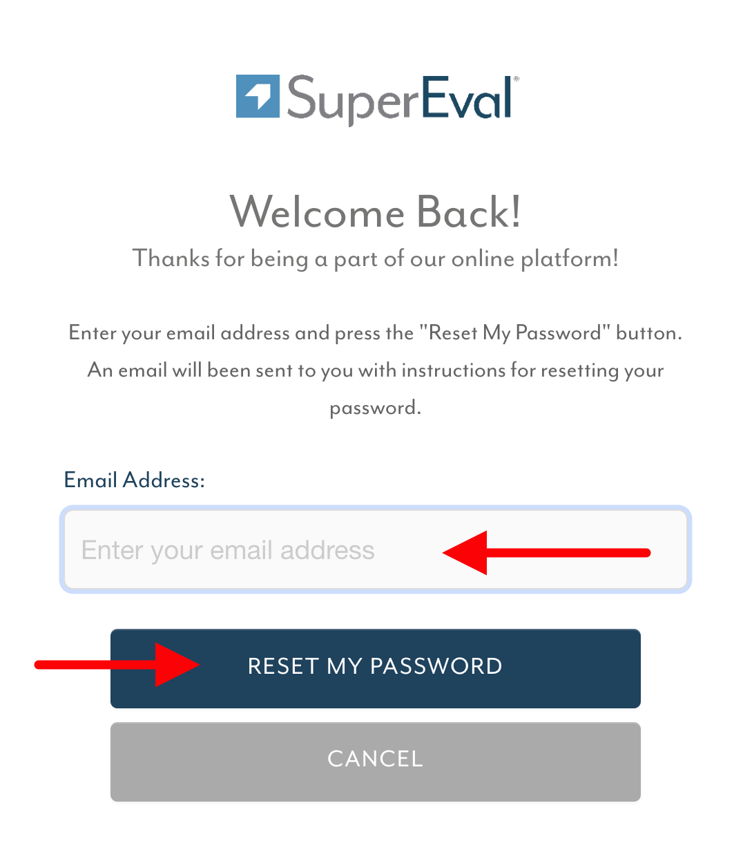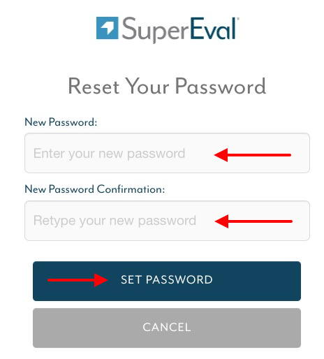 | Create or Reset Your SuperEval Password | |