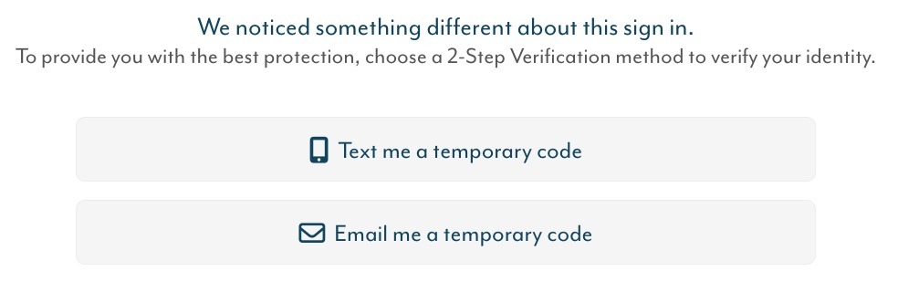 5. Login using your new password, then follow the remaining instructions to set up 2-Step Verification, using either a text to your phone or your email.